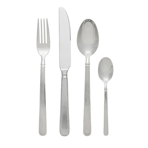 Nydelig Delia bestikk. Dette elegante bestikksettet har et klassisk design laget av rustfritt stål med en vakker blank sølvfinish. Kolleksjonen inneholder 16 deler: 4 kniver, 4 gafler, 4 skjeer og 4 teskjeer, alt vakkert pakket i en gaveeske. Designet for daglig bruk, er dette bestikket oppvaskmaskinsikkert og passer perfekt sammen med våre andre servise-kolleksjoner.