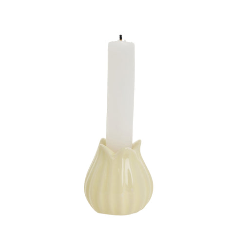 Staken er laget av keramikk og har en vakker, glatt overflate med subtile horisontale riller som gir en diskret, men sofistikert tekstur.