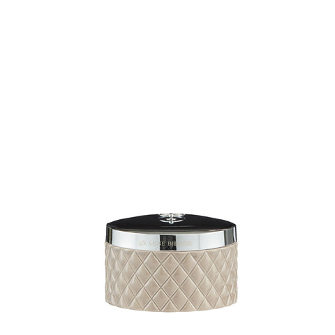 Eksklusiv brun krukke i harlekin mønster med sølvlokk i sink fra Lene Bjerre. Portia krukken har et eksklusivt utseende og måler L15xB15xH9 cm.