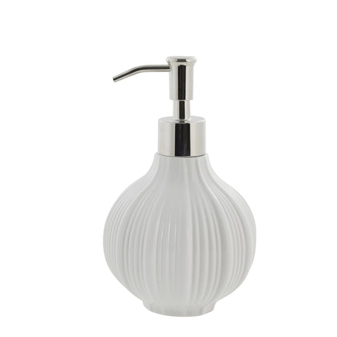 Vakre Lily dispenser i fargen hvit og måler L10,5 x B10,5 x H16,3 cm. Lily dispenser er laget av keramikk og har et sjarmerende og elegant design med et sofistikert stripemønster som tilfører et eksklusivt preg til ethvert baderom. Det er både et praktisk og dekorativt tillegg til badet ditt. Lily-badserien går gjennom en lang produksjonsprosess hvor hvert enkelt produkt krever mye arbeid. Alt dette er utrolig tidkrevende, men resulterer i et produkt vi er veldig stolte av. Vår Lily-serie inneholder alt du trenger for å skape et vakkert baderom.