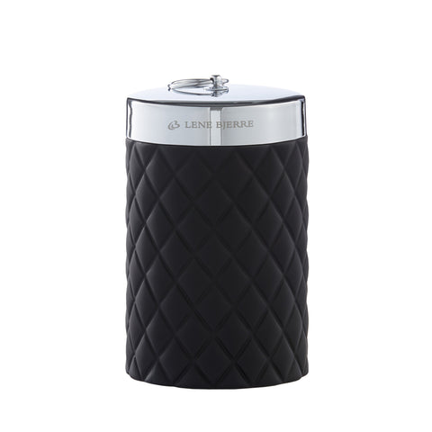 Eksklusiv svart krukke i harlekin mønster med sølvlokk i sink fra Lene Bjerre. Portia krukken har et eksklusivt utseende og måler L9xB9xH14 cm.