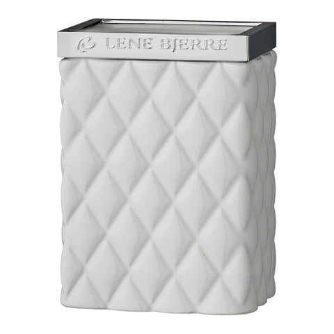 Denne vakre tannbørsteholderen i fargen hvit er laget i keramikk og sink Alloy og har en fin gullkant som gir tannbørstenholderen et eksklusivt utseende. Tannbørstenholderen måler L8xB6xH11 cm, og er en del av serien Portia.