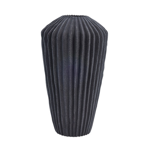 Classic mørkegrå coloured ceramic vase designed with elegant, subtle grooves. The vase measures L14,5xB14,5xH26,5 cm. and with its sleek and stylish design, the vase is perfect for creating a stylish and elegant atmosphere in your home.