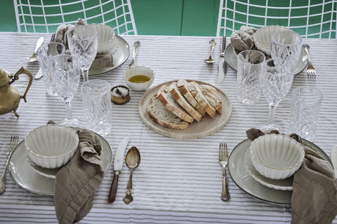 The Olivia tablecloth is perfect for both formal and casual gatherings. The classic striped pattern provides a timeless and beautiful look that will definitely elevate any table setting. Made from 100% cotton, it is durable and will last for many years to come.